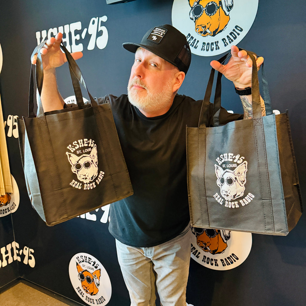 Perfect for hauling groceries, vinyl records, tailgate snacks, or that “just in case” six-pack, it’s sturdy, reusable, and full of rock ’n’ roll attitude. Show off your KSHE pride while you carry your schtuff the loud and proud way.